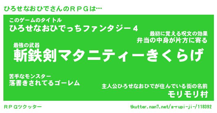 | 伝説のあだ名 | 『伝説のスナイパーひろせなおひで』 |