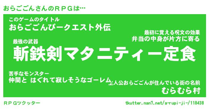 | 男性向けラノベタイトル風あだ名 | 『おらごごんの憂鬱』 |
