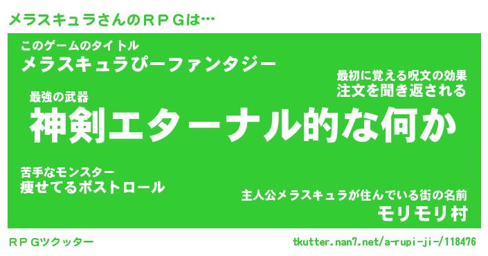 | 男性向けラノベタイトル風あだ名 | 『メラスキュラの憂鬱』 |