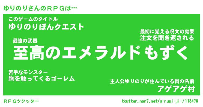 | 料理風あだ名 | 『節約★ゆりのりと油揚げの玉子丼』 |