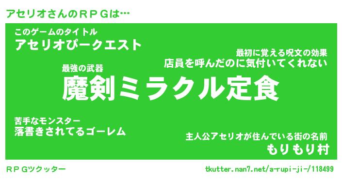 | 男性向けラノベタイトル風あだ名 | 『アセリオの憂鬱』 |