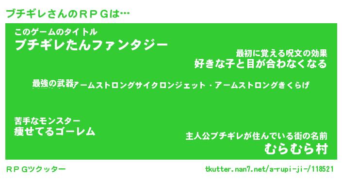 | ファンタジー風あだ名 | 『ブチフェル』『エターナルブチギレー』 |