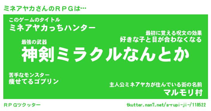 | 胡散臭い通販商品みたいなあだ名 | 『モテモテ間違いなしブレスレット…その名も「ミネアヤカ」』 |