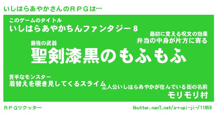 | 男性向けラノベタイトル風あだ名 | 『いしはらあやかの憂鬱』 |
