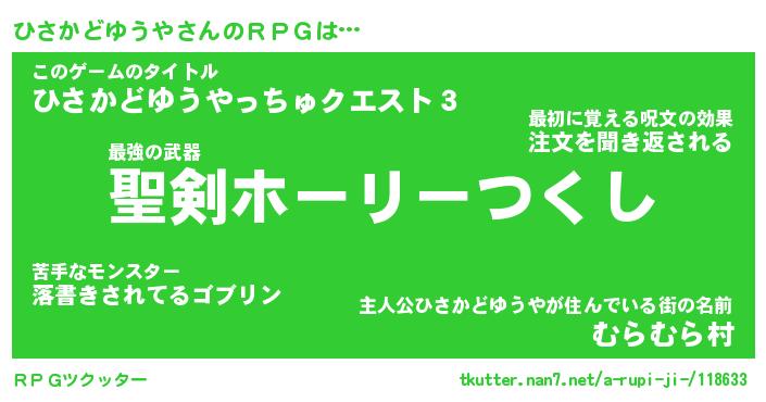 | 男性向けラノベタイトル風あだ名 | 『ひさかどゆうやの憂鬱』 |