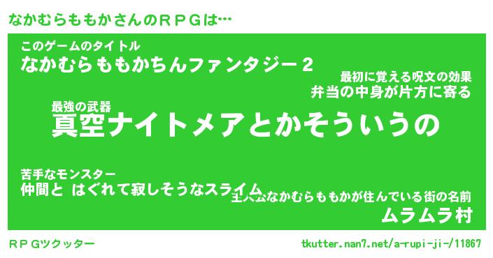 | 伝説のあだ名 | 『封印されしスナイパーなかむらももか』 |