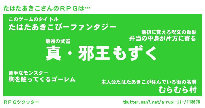 | 伝説のあだ名 | 『封印されし傭兵たはたあきこ』 |