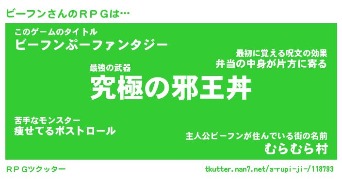 | 男性向けラノベタイトル風あだ名 | 『ビーフンの憂鬱』 |