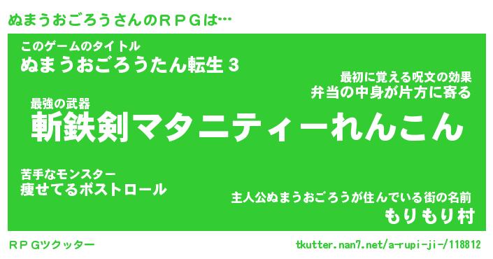 | 胡散臭い通販商品みたいなあだ名 | 『必ず成功する霊験あらたかなお札…その名も「ぬまうおごろう」』 |