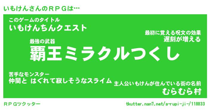 | ファンタジー風あだ名 | 『イモフェル』『エターナルイモケンー』 |