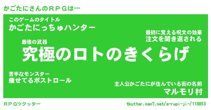 | ファンタジー風あだ名 | 『カゴフェル』『エターナルカゴタニー』 |