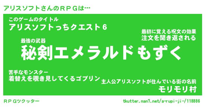| 伝説のあだ名 | 『伝説のスナイパーアリスソフト』 |