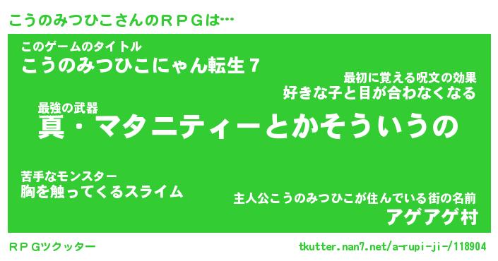 | 男性向けラノベタイトル風あだ名 | 『コウノミツヒコアートオンライン』 |