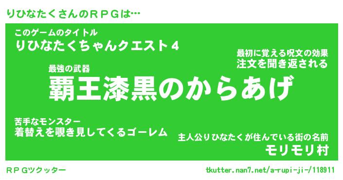 | 男性向けラノベタイトル風あだ名 | 『リヒナタクアートオンライン』 |