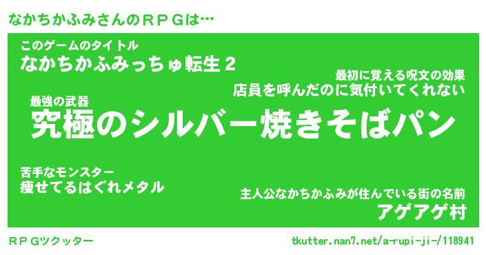 | 男性向けラノベタイトル風あだ名 | 『ナカチカフミアートオンライン』 |