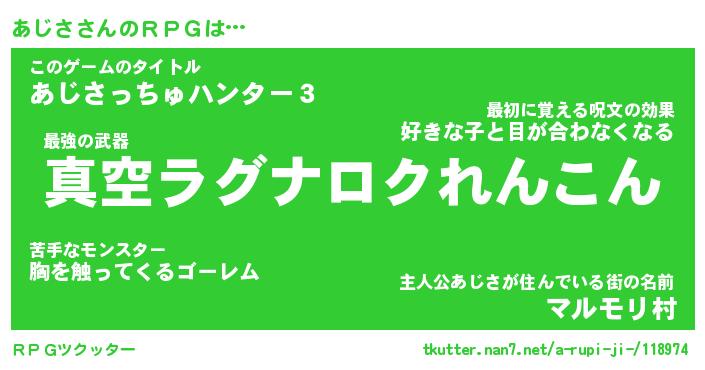 | 伝説のあだ名 | 『封印されし竜騎士あじさ』 |