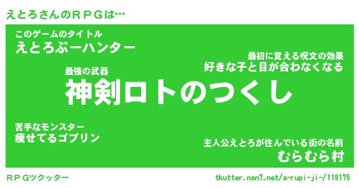| 男性向けラノベタイトル風あだ名 | 『えとろの憂鬱』 |