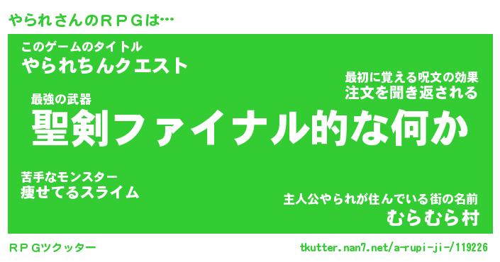 | 男性向けラノベタイトル風あだ名 | 『やられの憂鬱』 |