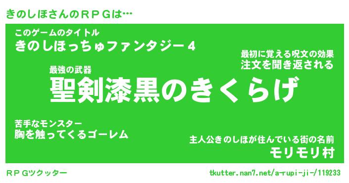 | ファンタジー風あだ名 | 『キノフェル』『エターナルキノシホー』 |