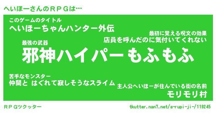 | 意味不明あだ名 | 『ペロリンへいほー』『永久保存へいほー』 |