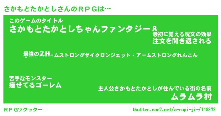 | 男性向けラノベタイトル風あだ名 | 『サカモトタカトシアートオンライン』 |