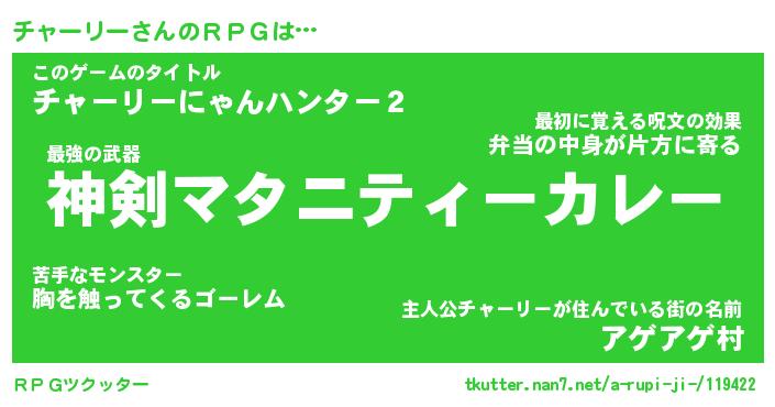| 料理風あだ名 | 『節約★チャーリーと油揚げの玉子丼』 |