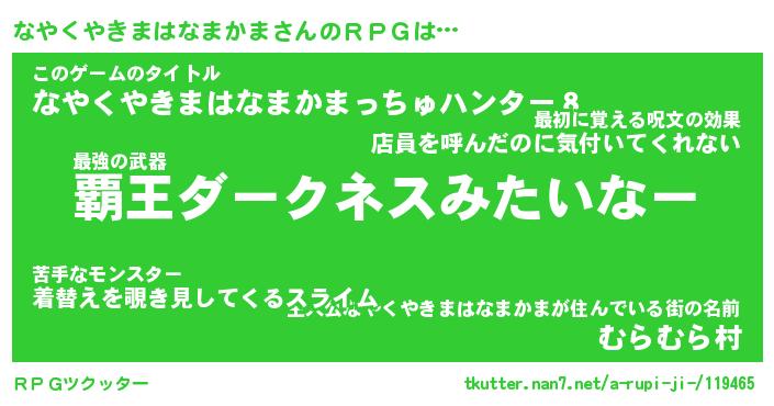| 男性向けラノベタイトル風あだ名 | 『ナヤクヤキマハナマカマアートオンライン』 |