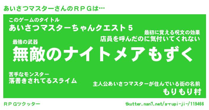 | ツイッター | あいさつマスターさんのツイッターID『dendenmushi_nyan』 |