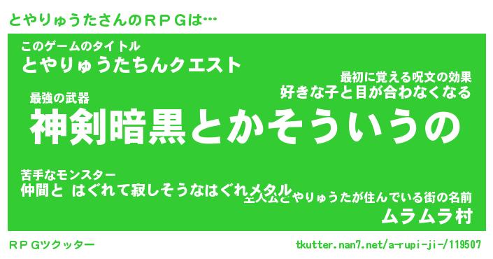 | 男性向けラノベタイトル風あだ名 | 『とやりゅうたの憂鬱』 |