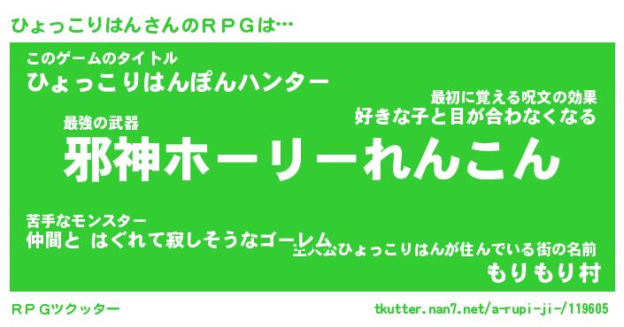 | 男性向けラノベタイトル風あだ名 | 『ヒョッコリハンアートオンライン』 |