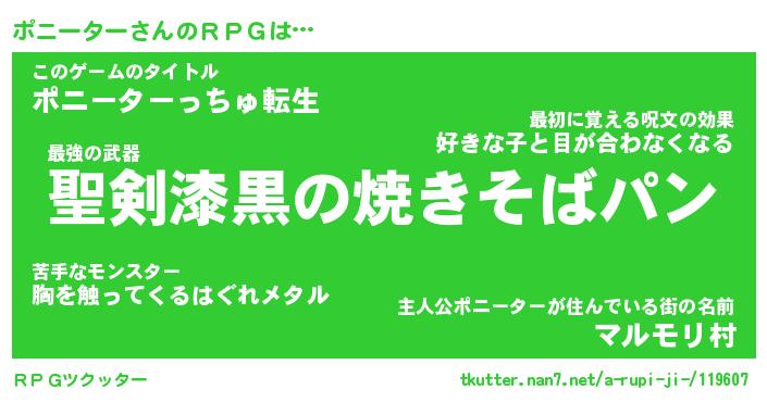 | 男性向けラノベタイトル風あだ名 | 『ポニーターの憂鬱』 |