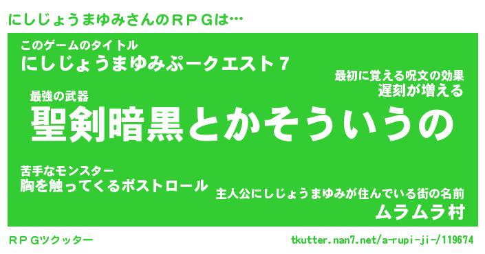 | 男性向けラノベタイトル風あだ名 | 『にしじょうまゆみの憂鬱』 |