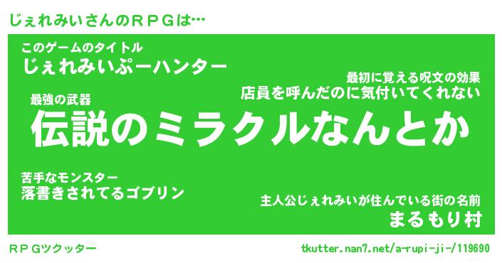 | 男性向けラノベタイトル風あだ名 | 『じぇれみいの憂鬱』 |
