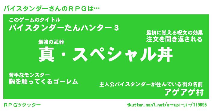 | ヒーロー風カッコイイあだ名 | 『スーパーバイスタンダー』 |