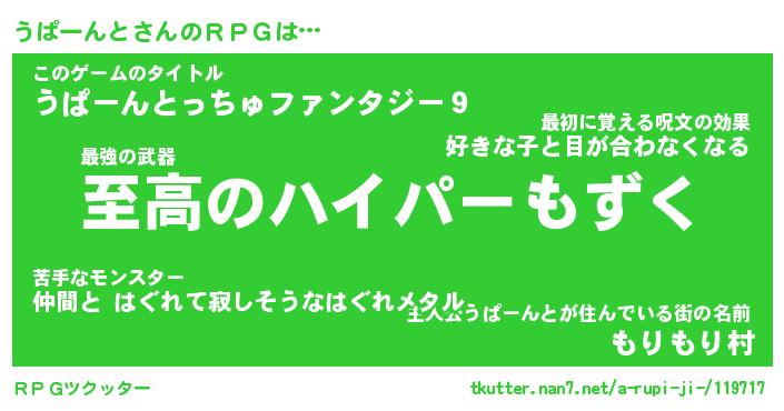 | ファンタジー風あだ名 | 『ウパフェル』『エターナルウパーントー』 |