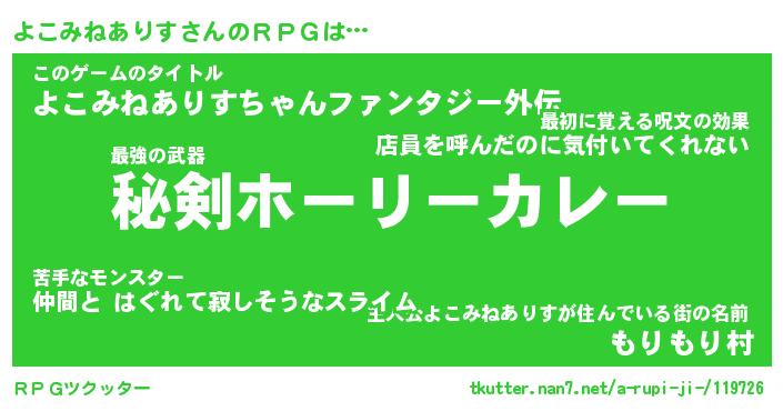 | 料理風あだ名 | 『節約★よこみねありすと油揚げの玉子丼』 |