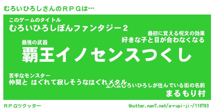 | ヒーロー風カッコイイあだ名 | 『スーパームロイヒロシ』『魔戒騎士ムロ』 |