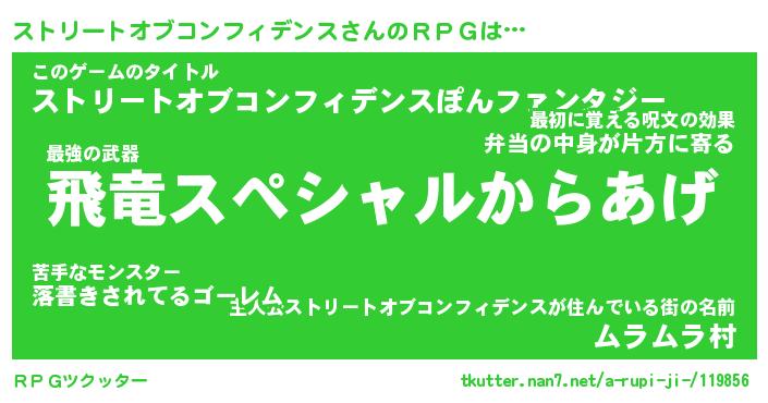 | 意味不明あだ名 | 『ペロリンストリートオブコンフィデンス』 |