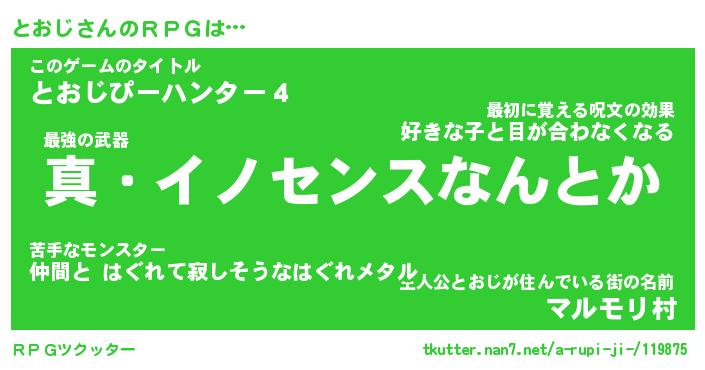 | 伝説のあだ名 | 『封印されしスナイパーとおじ』 |