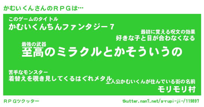 | ファンタジー風あだ名 | 『カムフェル』『エターナルカムイクンー』 |