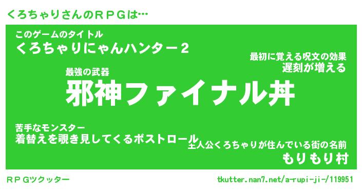 | 伝説のあだ名 | 『封印されし竜騎士くろちゃり』 |