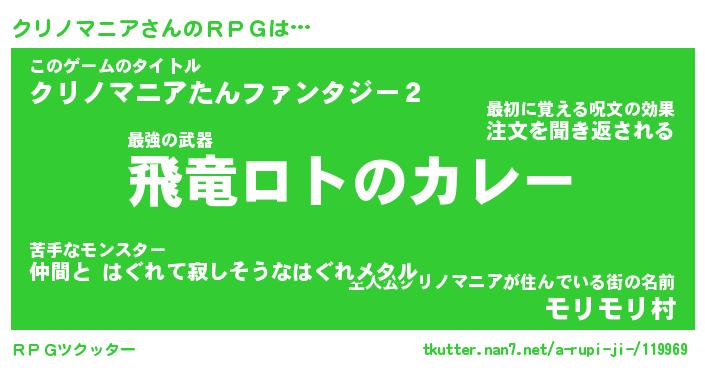 | 伝説のあだ名 | 『封印されし竜騎士クリノマニア』 |