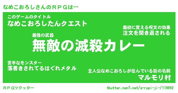 | 伝説のあだ名 | 『封印されしスナイパーなめこおろし』 |