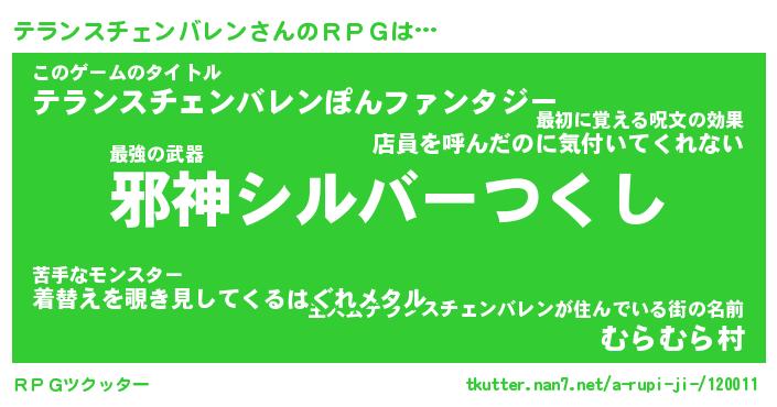 | 男性向けラノベタイトル風あだ名 | 『テランスチェンバレンアートオンライン』 |