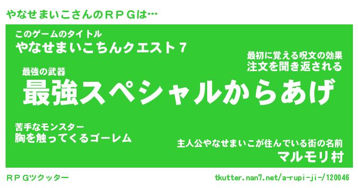 | 男性向けラノベタイトル風あだ名 | 『ヤナセマイコアートオンライン』 |