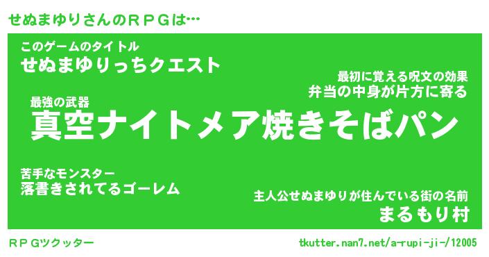 | 男性向けラノベタイトル風あだ名 | 『セヌマユリアートオンライン』 |