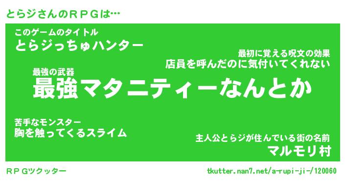 | 胡散臭い通販商品みたいなあだ名 | 『モテモテ間違いなし霊験あらたかなお札…その名も「とらジ」』 |