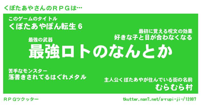 | 男性向けラノベタイトル風あだ名 | 『クボタアヤアートオンライン』 |