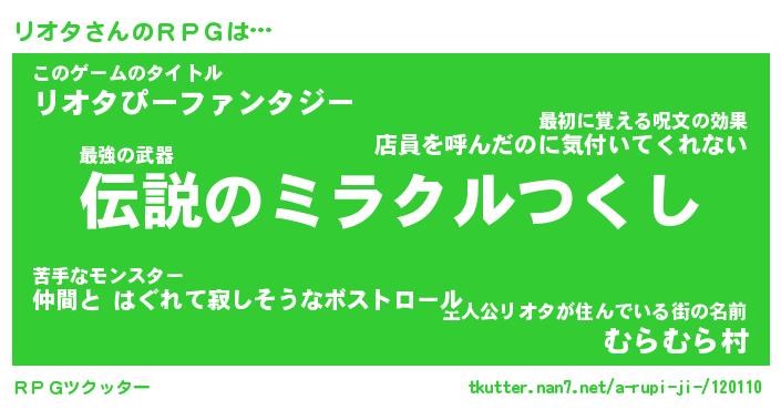 | 男性向けラノベタイトル風あだ名 | 『リオタの憂鬱』 |