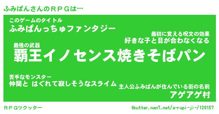 | ヒーロー風カッコイイあだ名 | 『スーパーフミパン』『天弓騎士フミ』 |